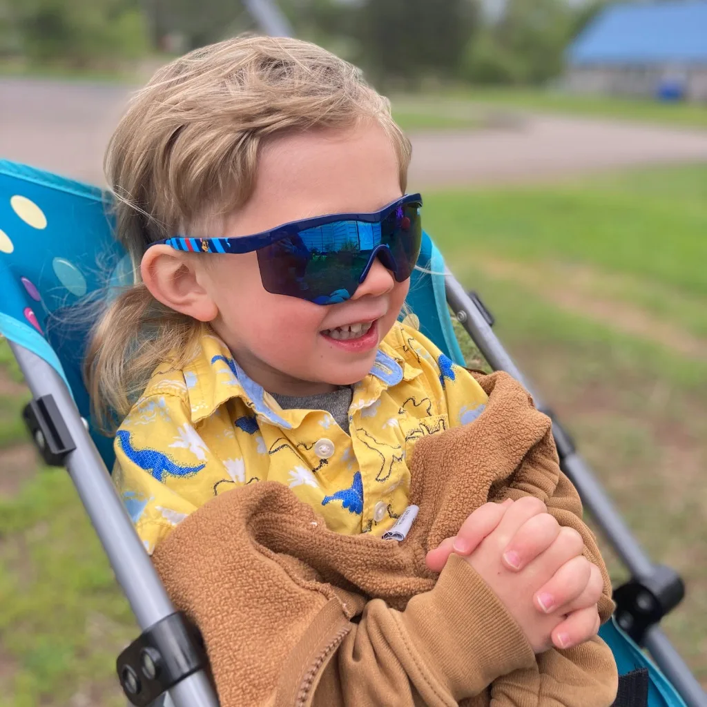As a baby Bearrant had fast growing hair. It was blonde and curly (still is). Sometimes he gets full ringlets, it just depends on how his hair dries. With his hair being so handsome there was no way we were cutting it. His dad suggested a mullet and that is where we are today!