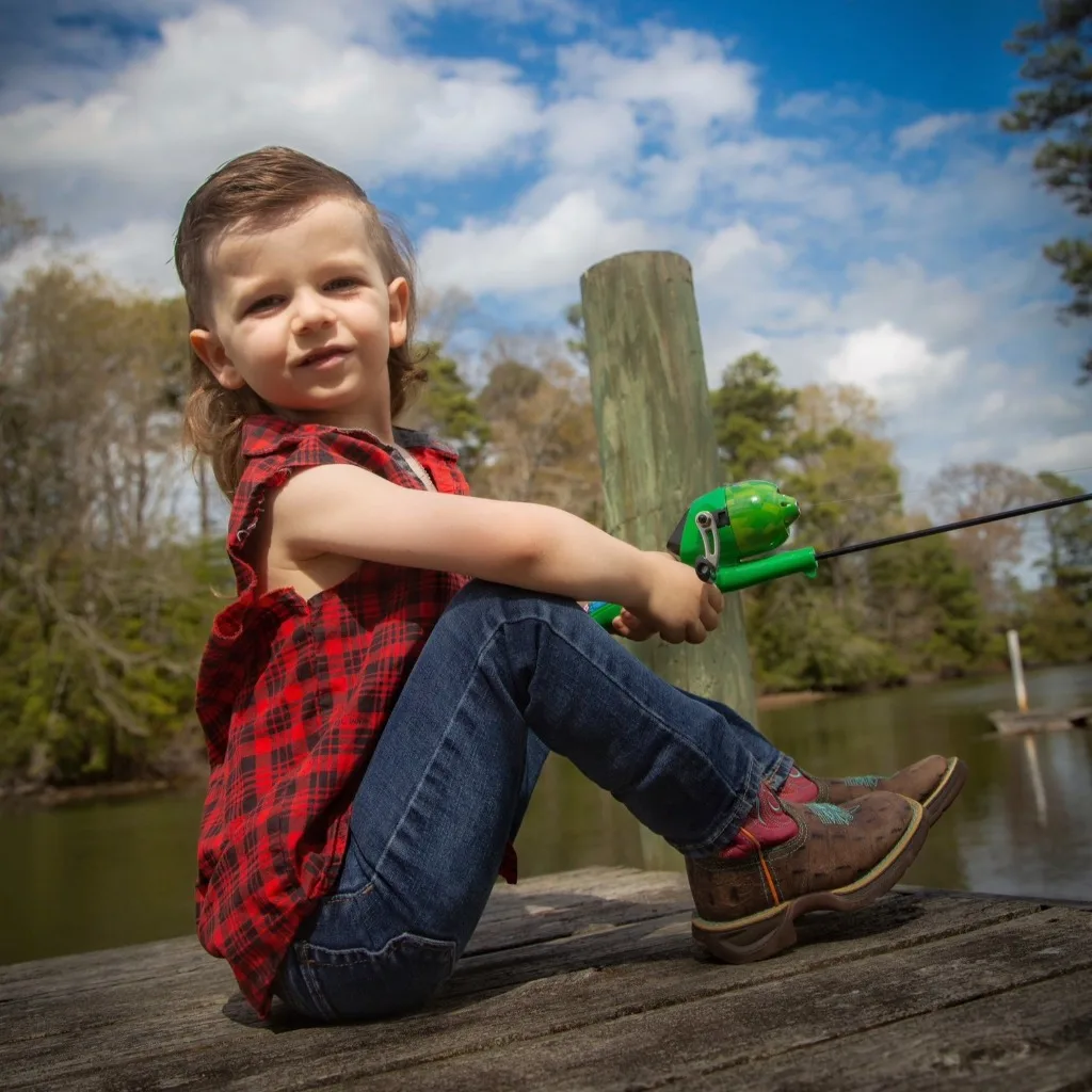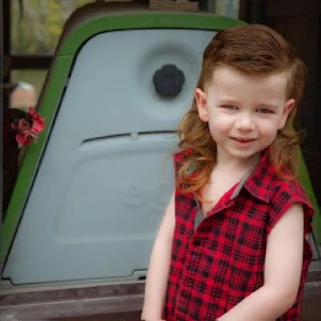 Gibson's mullet journey began with his first haircut frustrated with hair in his eyes but loving his locks he knew he wanted a change. When the Frankie Fadez told Gibson he would only cut the front Gibson jumped right in the chair and the mullet was born! Gibson has the personality of a little warrior. Like his mullet he can be mild mannered like the business in the front or ready to rock and roll like the party in the back with his long flowing mane.