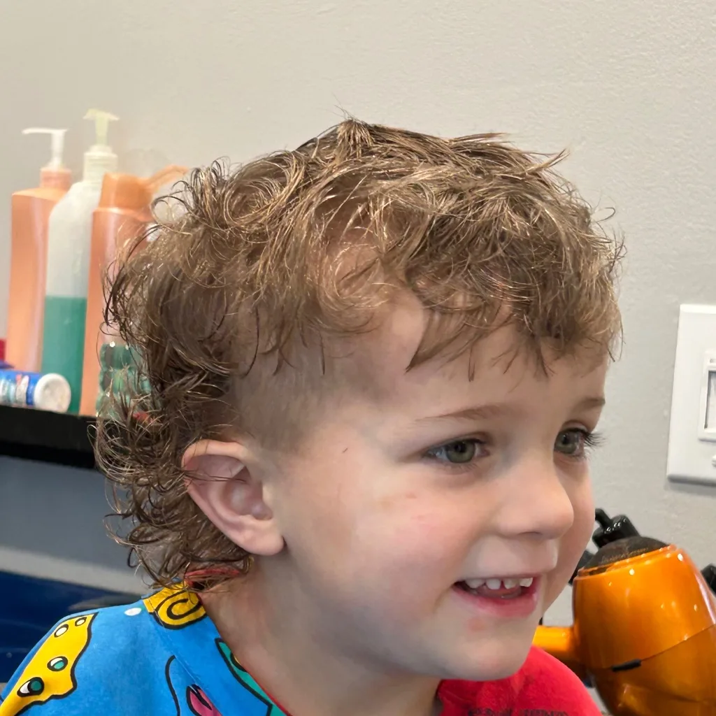 Mom sent dad cute boy hair cuts but also said “I don’t want to cut off his curls”.