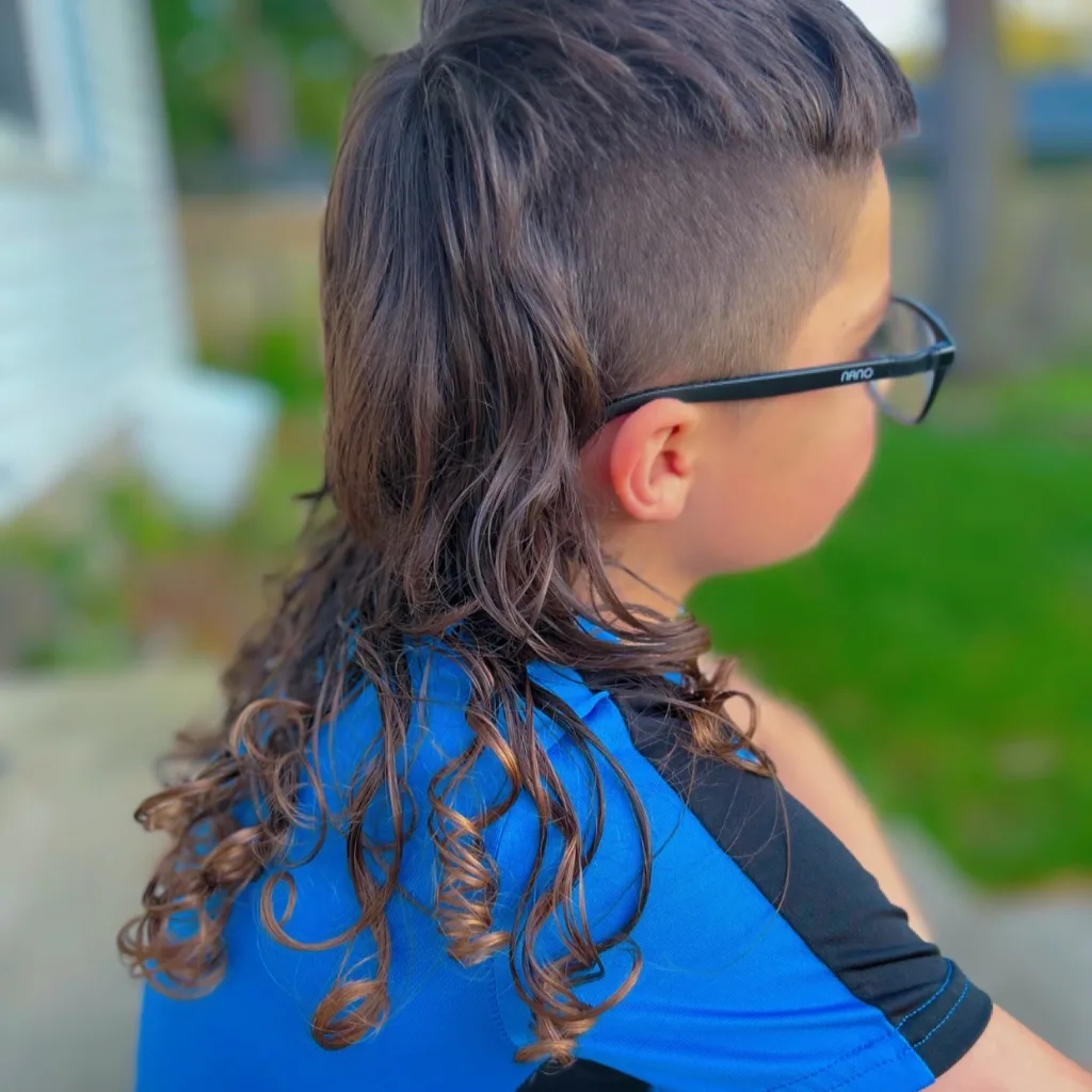I was 5 years old when I saw my first mullet. I went to the Pizza and Sub Shop in Muskegon and saw my dad’s friend, Tony. Tony’s mullet was glorious. All business in the front and a curly party in the back. Accompanied by some solid mutton chops and beard. Tony inspired me that very day to grow out my hair and have an even sweeter mullet than his. I started growing out my mullet in the fall of 2022. I’ve gotten so many compliments. Everyone loves a kid with a mullet! I’ve got my mom’s natural curls and my dad’s outgoing personality. It’s a deadly combination!