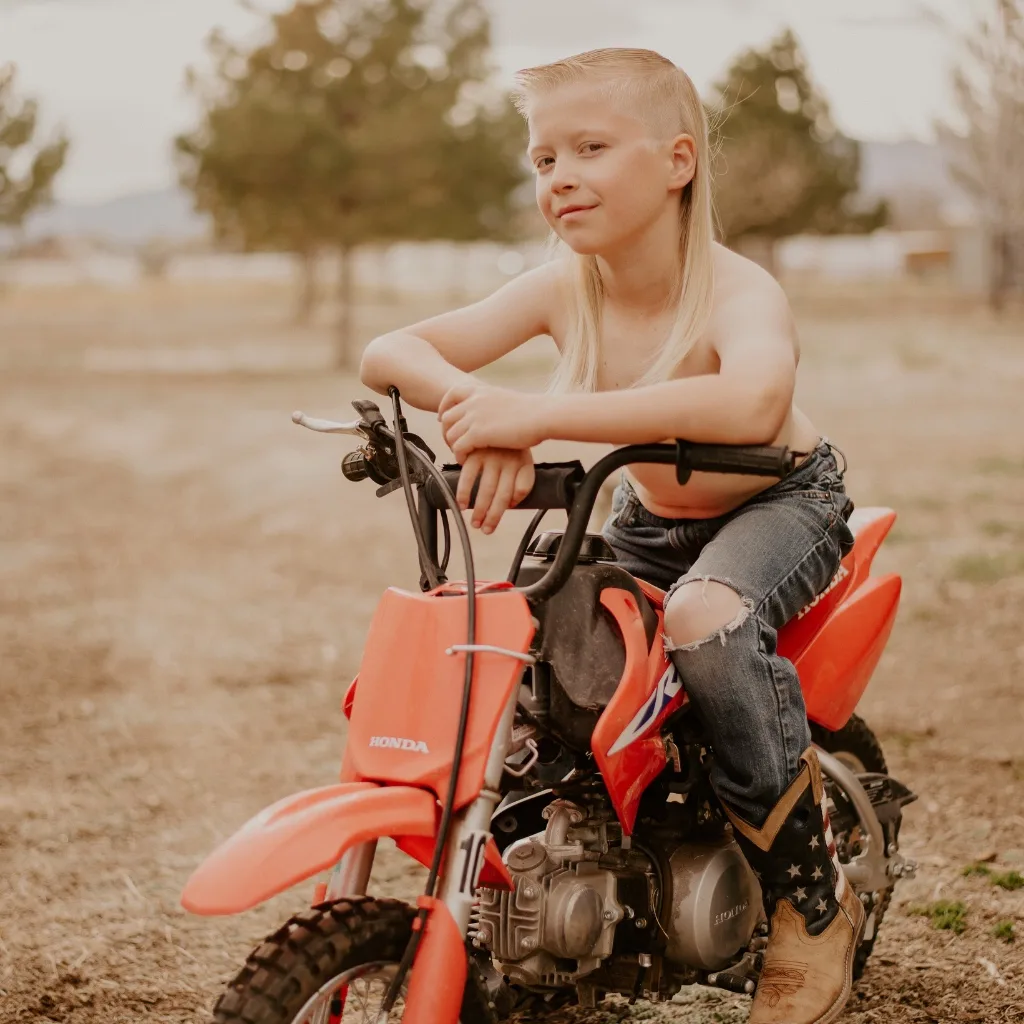 “I Want My Mullet Back” by Billy Ray Cyrus. It’s got the perfect mix of humor, country roots, and mullet pride… just like me. This song gets the mullet lifestyle, and it’s been blasting in the background more than once while I ride my dirt bike or get ready for the day.