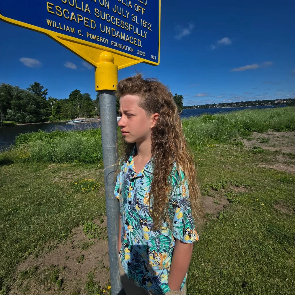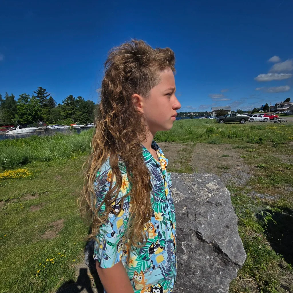 My mullet name wad inspired by one of my 4th grade teachers who named it The Oswrgatchie Otter Tail. Thank yoy so much Mrs. Hess. I was inspired to start the mullet after I saw one of my friends have one and I thought well I have curly hair so why not try it. I have had the mullet for 3.5 years now and it is still going strong with no end in sight. This is my 3rd year entering the contest and I want to make it farther than I ever had before. Whether the mullet is under my football helmet, straightened or naturally curly it is always flowing with a total length of 27 and 1/4 inches long. I want to give a huge shout out to my barber Austin Brooks at Mastrella's Barber shop who has been there from the start of the first cut starting the mullet and for many more years to come.