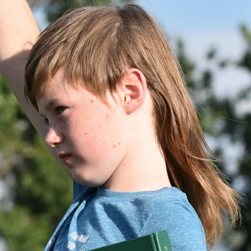 In Kindergarten, I thought I wanted to have a mullet. I was thinking it would get long and I would donate it, so that I could grow a mullet for fun and help someone else that has lost their hair. Then I found out about the mullet competition and decided to grow it longer. I also saw somebody's full grown mullet and wanted to keep growing mine. I thought I should enter the competition.